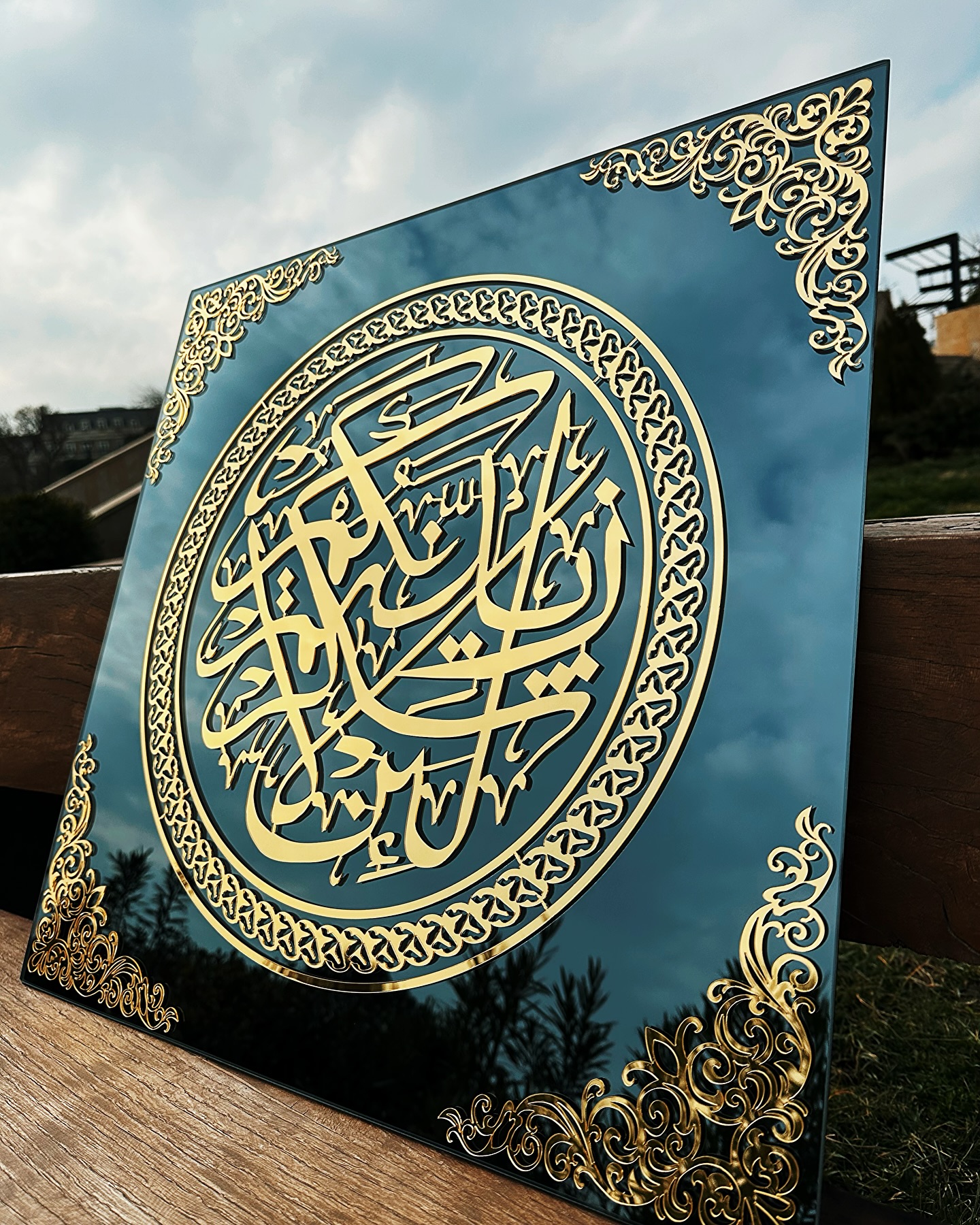 Əl işidir, keyfiyyətli güzgüdən hazırlanır. Üzərinə istənilən yazını yazmaq mümkündür.