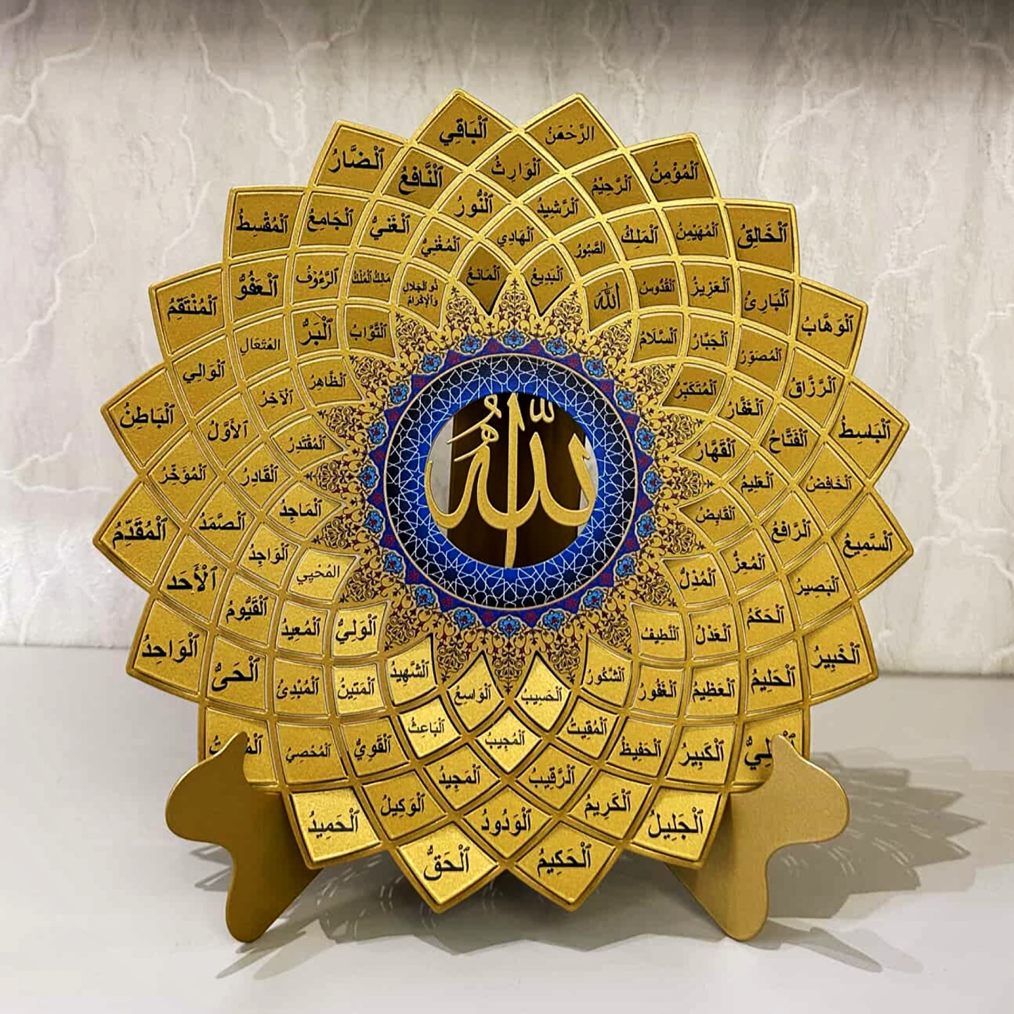 Metaldan hazırlanan Əsmaül Hüsna həm özünüzə həmdə dəyər verdiyiniz insanlara vermək üçün mənəvi dəyəri yüksək dini hədiyyələrdəndir. Üzərində Allahın adları qeyd edilib.